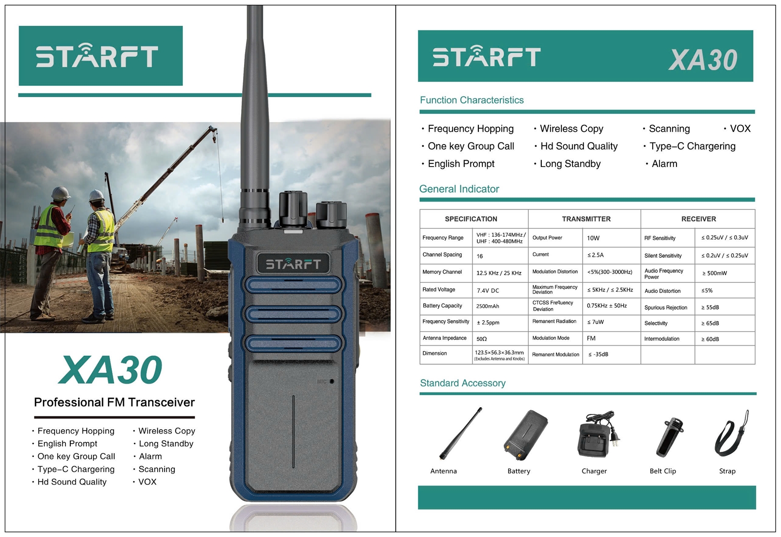 – Dải tần số UHF: 400 – 470mhz – Công suất: 10W – Dung lượng pin: Li-Ion, 7.4V / 2500mAh – Kích thước : 123.5 x 56.3 x 36.3 mm – Trọng lượng: 350g